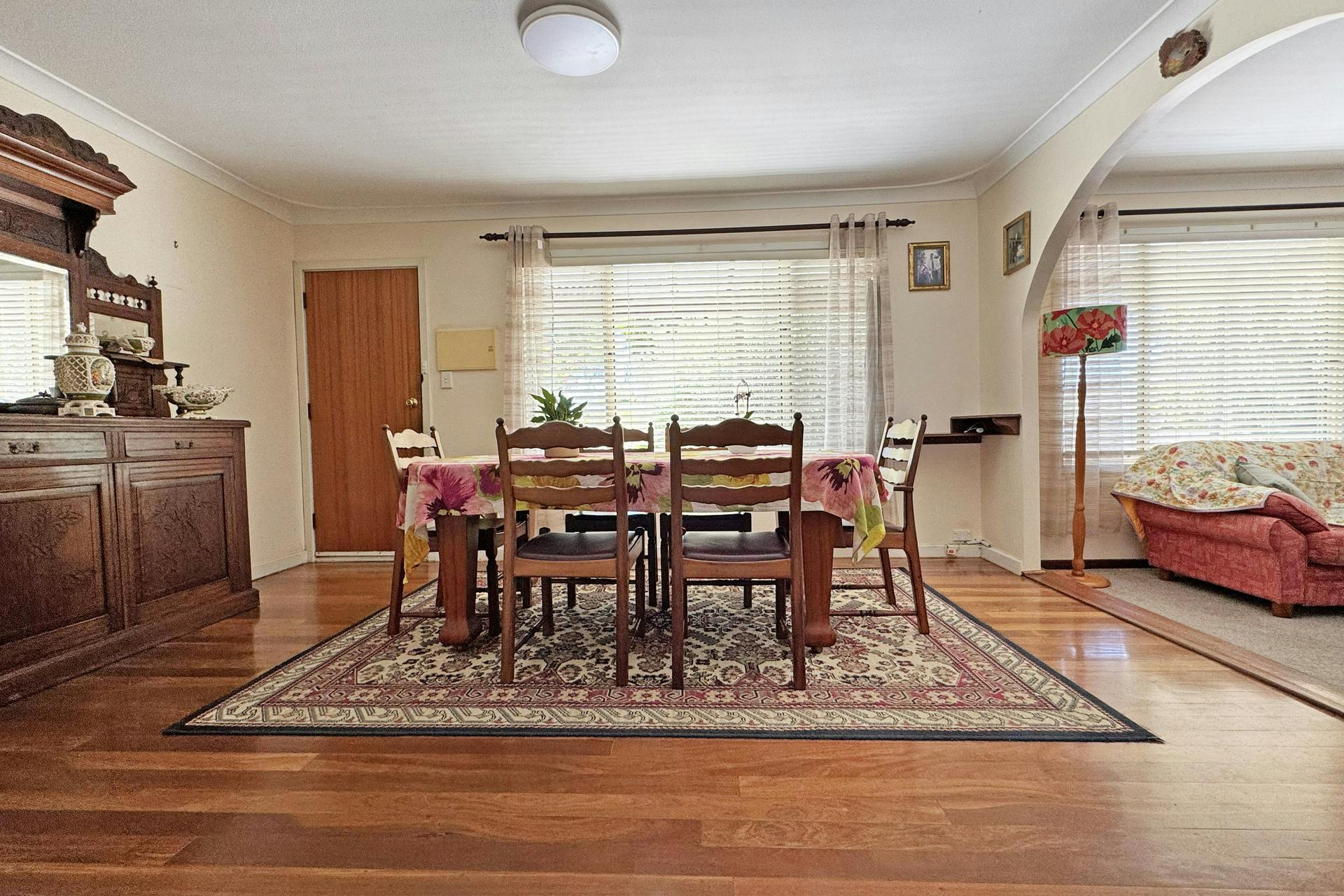 Inside, the carpeted lounge room features a ceiling fan and opens out to the rear patio, creating an easy indoor–outdoor connection. The open-plan kitchen and dining area is complemented by beautiful Jarrah timber floorboards, adding warmth and character to the home.