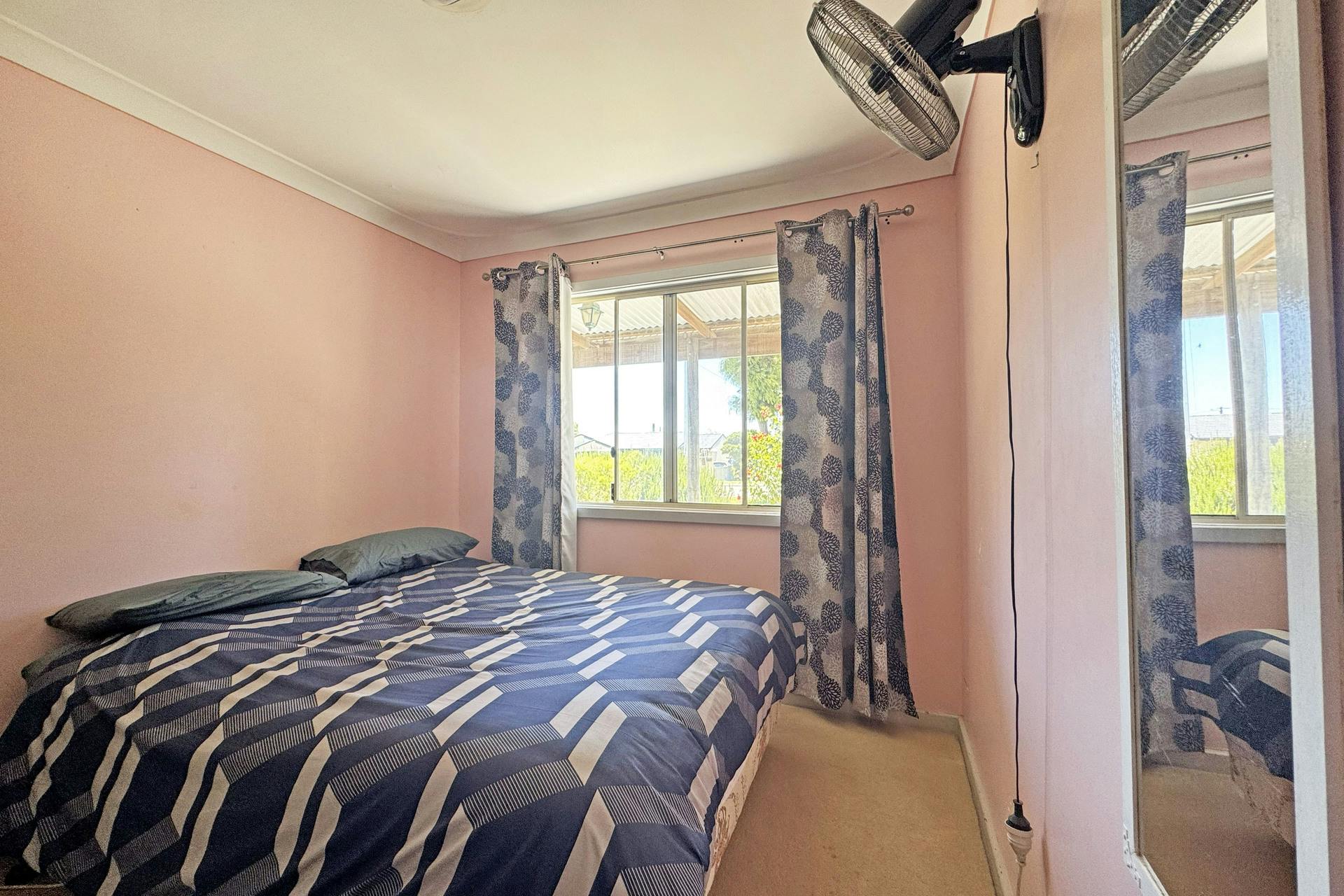 All three bedrooms are carpeted, with the main bedroom offering two double robes and a ceiling fan. The bathroom includes both a separate shower and bath, while the laundry is well equipped with built-in storage, trough and a separate WC. Security screen doors are fitted to both the front and rear entrances for added peace of mind.