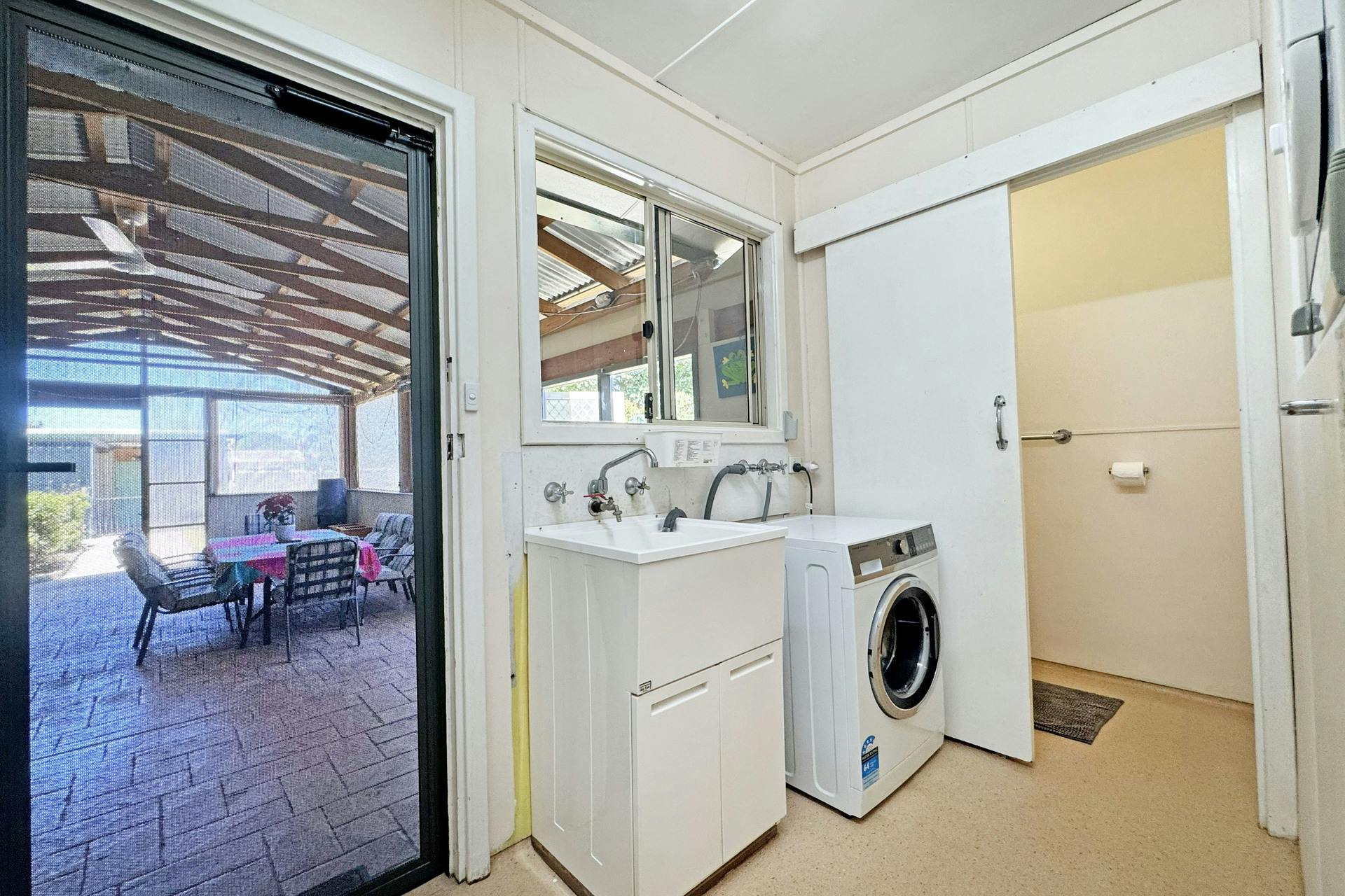 - Laundry, lino floor, built-in cupboard, trough, separate WC, door to rear patio, security screen